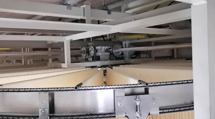 ◆ 調速式掛面輸送裝置,面桿移行速度可調、間距可調、各干燥環節的干燥時間可調,充分適應掛面柔性化生產。