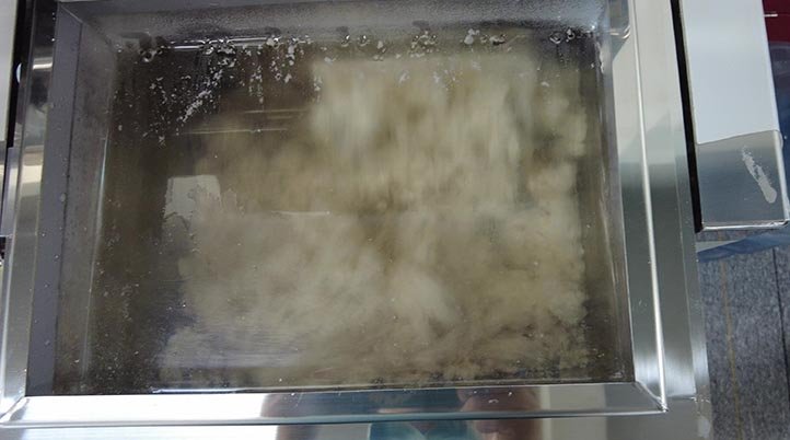 和面過程需要5分鐘,每次和面15公斤。分兩次加水,第一次加水攪拌3分鐘,讓面粉跟溶液結合持續揉面開始產生谷蛋白組織。