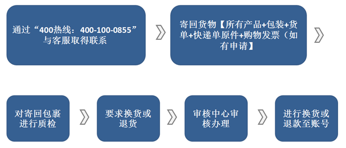 2. 遵循退換貨受理流程,以確保及時為您辦理退換貨服務;